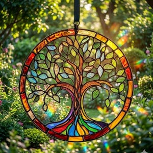 Family Unbreakable Bond Tree Of Life Personalized Stained Glass Window Hanging Suncatcher, Mother’s Day Gift, Birth Flower Gifts