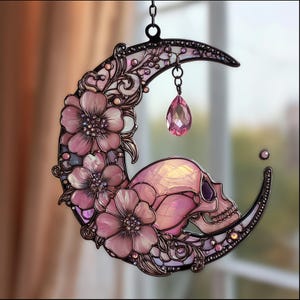 Set of 3 Hanging Flower Basket Acrylic Suncatchers – Faux Stained Glass Window Decor with Red, Yellow, and Purple Blooms, Garden Lover Gift